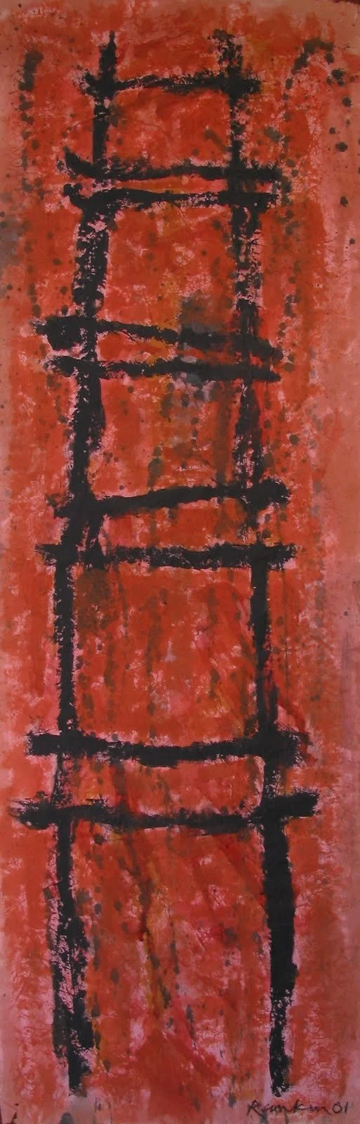 Jacob's Ladder - Red Ladder (acrylic on canvas) 84" x 20" - 2002